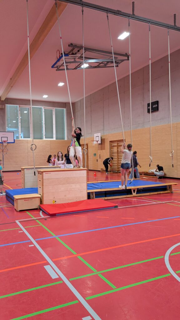 Action, Herausforderung und viel Spaß hatten die Schülerinnen und Schüler der Franziskus-schule bei den vielen Stationen des Fun-Olympic-Parcours, den die Schülerinnen und Schüler der 10b für sie in der Turnhalle vorbereitet hatten. Als I-Tüpfelchen und Highlight für die Kinder gab es noch einen Stationenlaufzettel auf dem Stempel für die erbrachten Leistungen verteilt wurden.